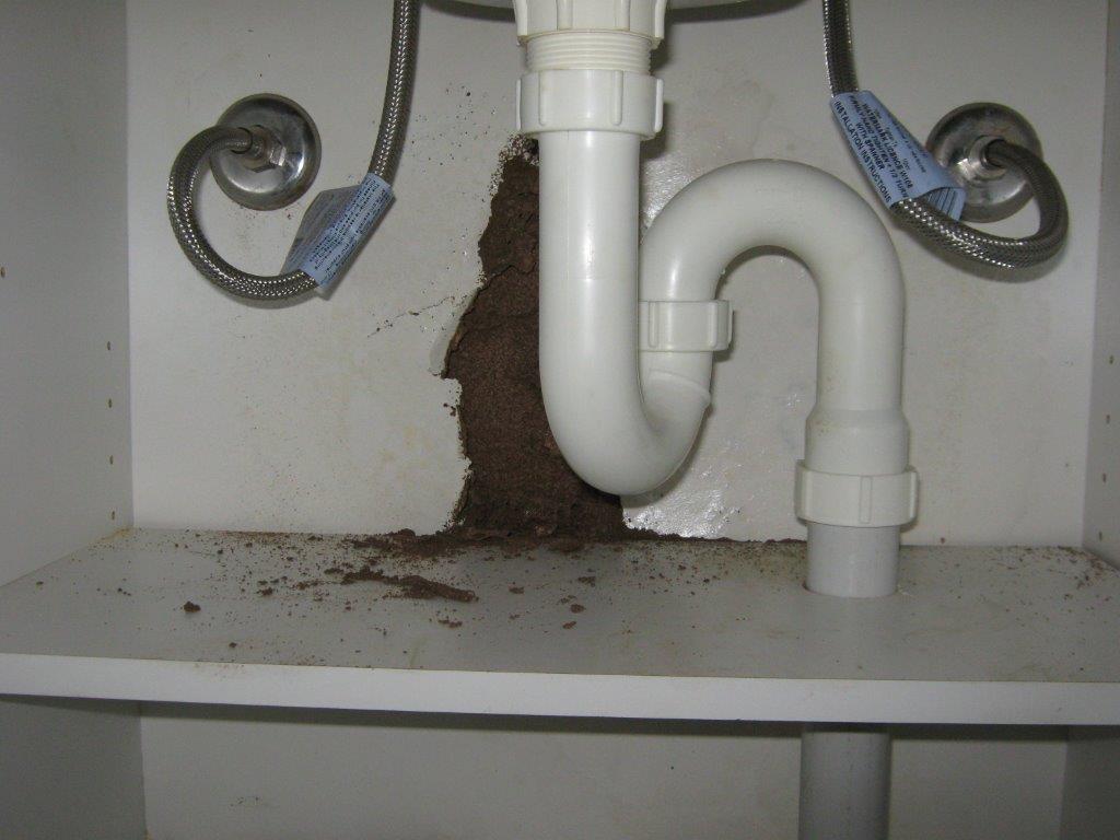 Termite nest behind wash basin